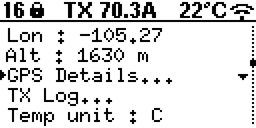 TX x.xA: RMS current shown during transmit.