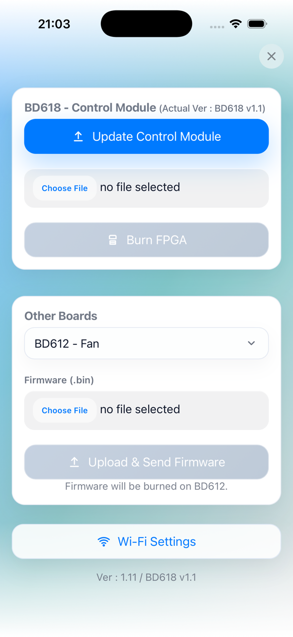 Update Main Firmware: Upload the firmware for the main controller.